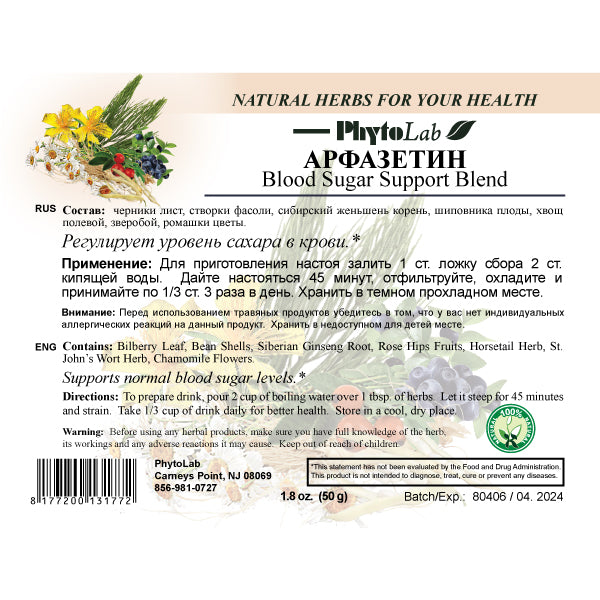 Contains: Bilberry Berries, Bean Shells, Siberian Ginseng Root, Rose Hips Fruits, Horsetail Herb, St. John's Wort Herb, Chamomile Flowers.