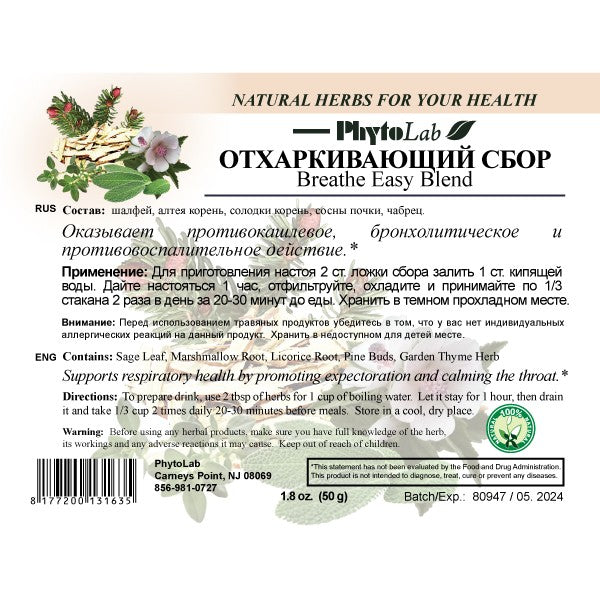 Contains: Sage Leaf, Marshmallow Root, Pine Buds, Garden Thyme Herb.