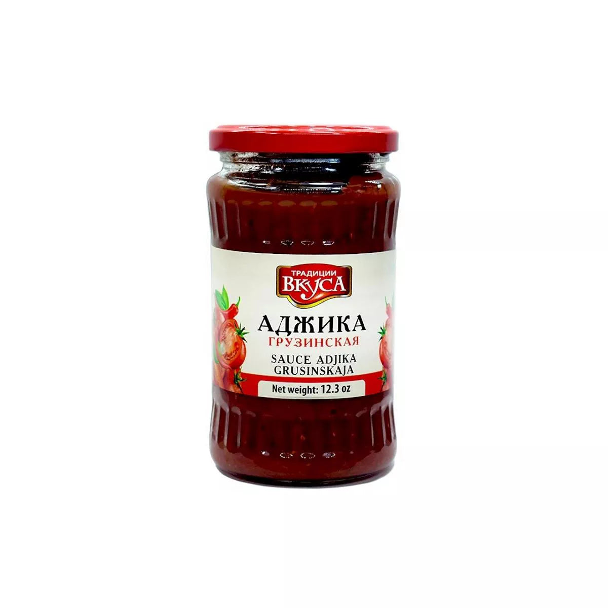 Tradicii Vkusa Adjika Georgian Sauce 12.3oz is an authentic, spicy blend from the heart of Georgian cuisine. Crafted with the finest peppers, garlic, and herbs, this sauce adds a fiery kick and rich flavor to grilled meats, stews, soups, and more. Perfect for barbecues or marinating dishes, it’s versatile and enhances a wide variety of meals.