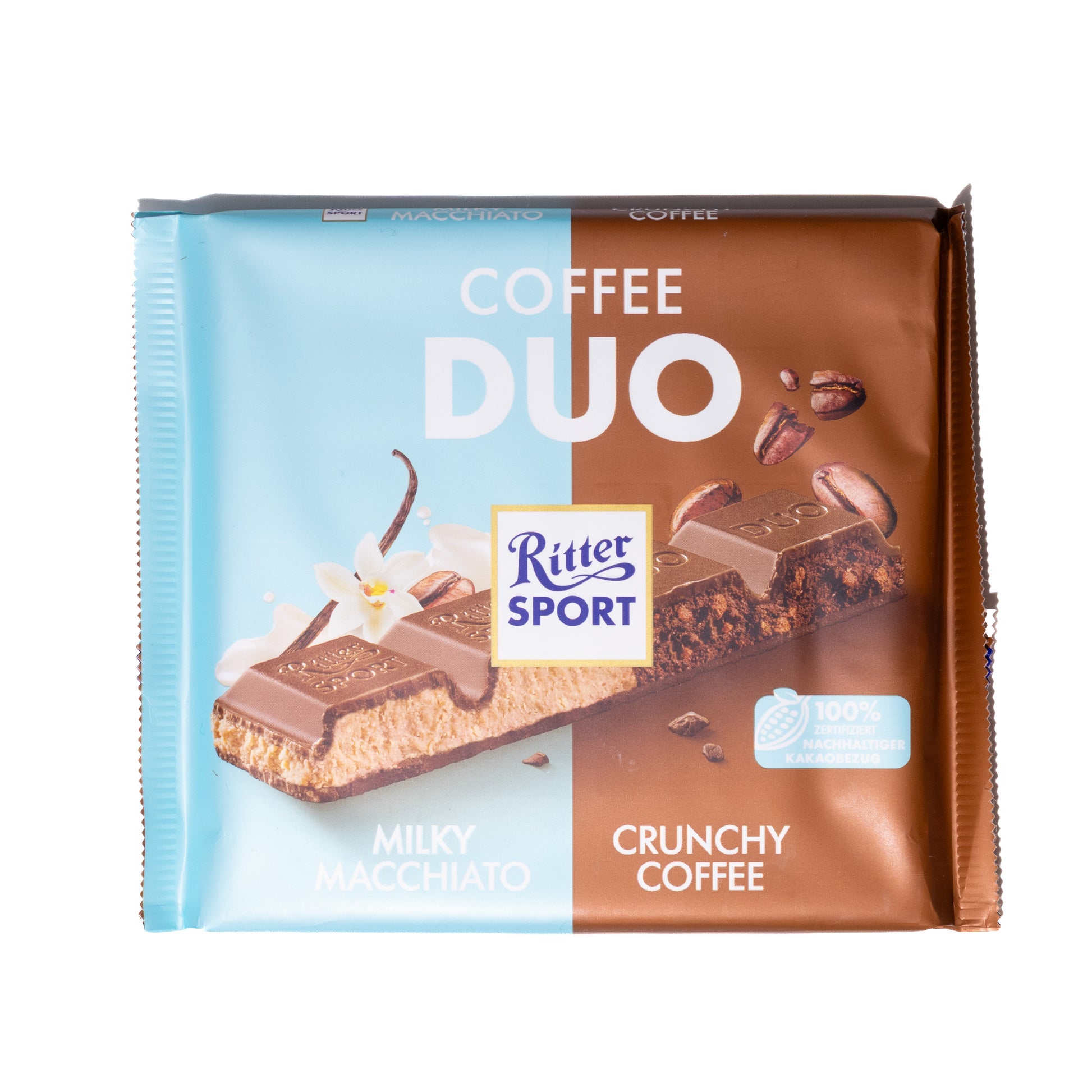 - Two-in-one Ritter Sport Duo: Milky Macchiato + Crunchy Coffee