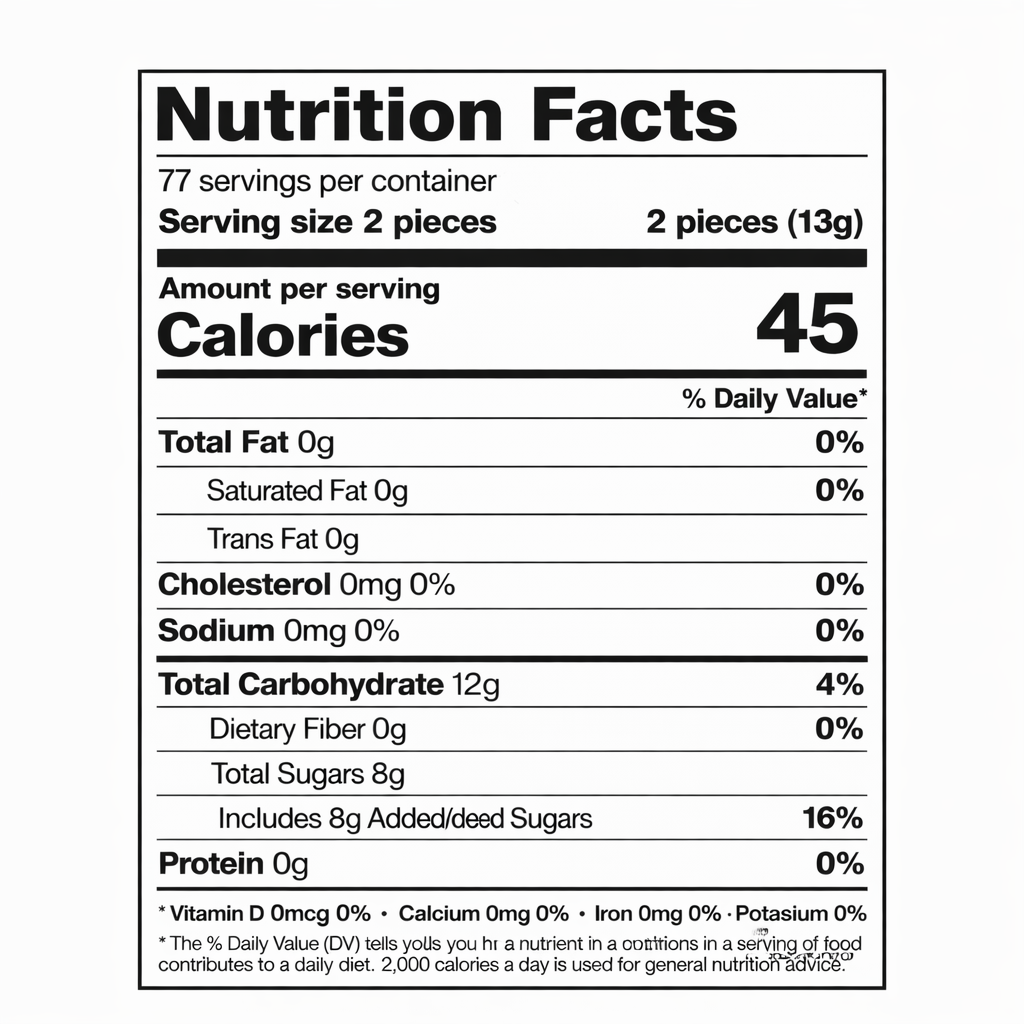 Servings: 77, Serving size: 2 pieces (13g)