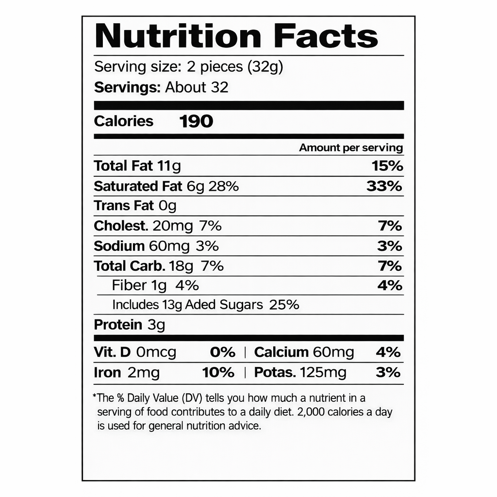 Serving size: 2 pieces (32g)