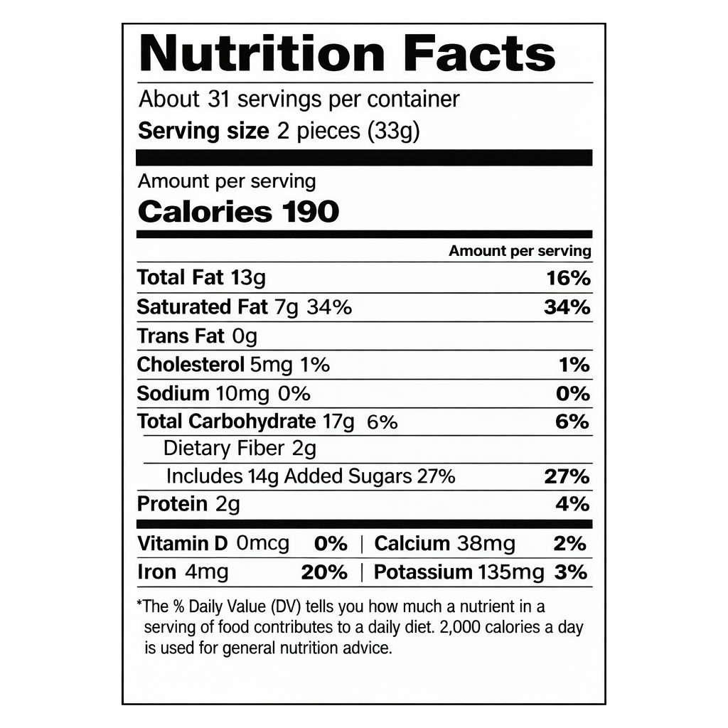 Serving size 2 pieces (33g)