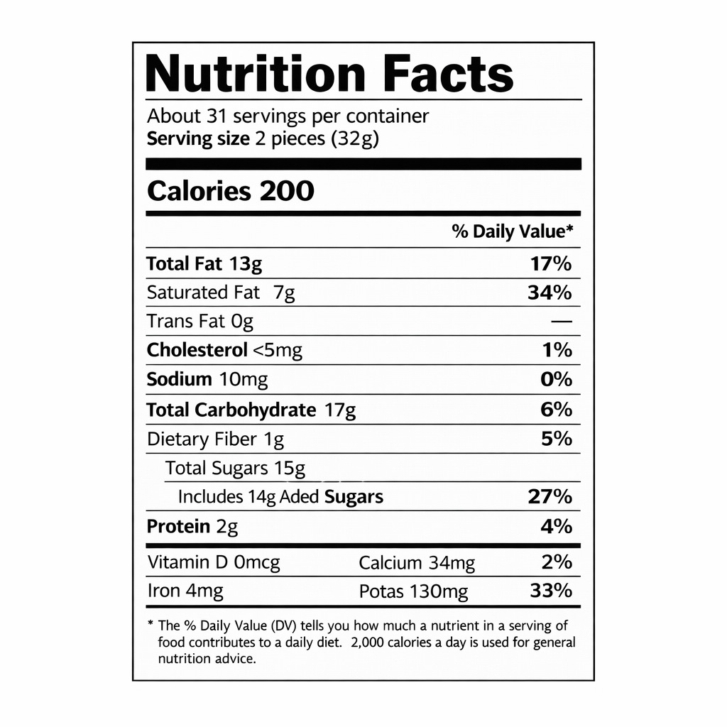 Serving size: 2 pieces (32g)