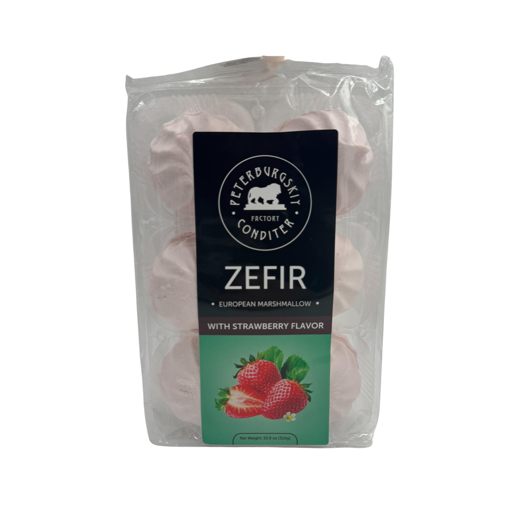 Zefir with Strawberry Flavor, 310g, is a delicious treat that combines the light, airy texture of traditional zefir with the sweet and fruity taste of strawberries. Each piece is soft and fluffy, offering a melt-in-your-mouth experience with a delightful strawberry flavor.
